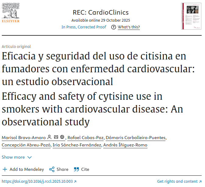 El resultado fue la aceptación del artículo “Eficacia y seguridad del uso de citisina en fumadores con enfermedad cardiovascular: un estudio observacional” en una revista de referencia.